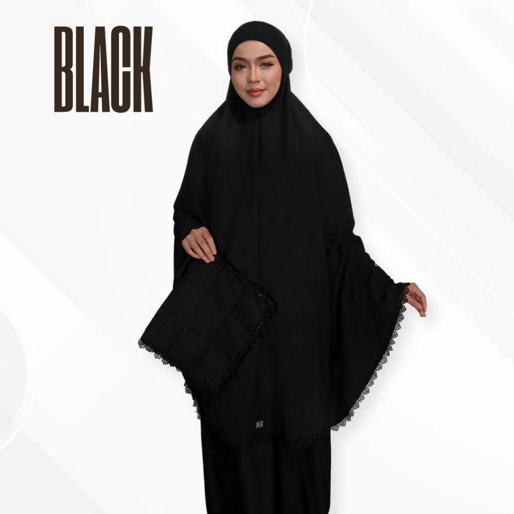 - Dihiasi dengn floral lace pada telekung